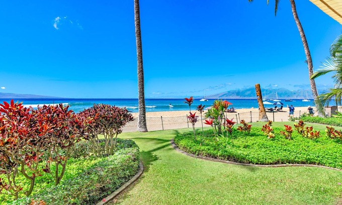Maui Resort Rentals: Kaanapali Ali'i – Oceanfront Ground Floor + Yard Area, 6 Total Bedrooms+DEN, Sleeps 20, Steps to Pools, Beach, BBQs!