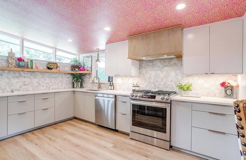 Looking up is exactly what guests will find themselves doing while visiting LOOK UP! Explosive wallpaper and art creations covering every ceiling of this home will entice you to look up. Along with the color-crazed ceilings, artful reminders throughout the home remind us to “look up” at Jesus! This home encourages our guests to look up at Him, and wallpaper, in reflection of God’s own creative nature. We are made in His image, and this includes the gift of creativity & design!
