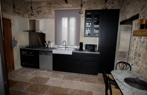Mazet Gite without concern, is a typical Provencal farmhouse of 90m2, with 1 floor, located in the center of our village, Saint Etienne du Grès. The apparent stone, typical of Provence, allied with the industrial modernism make it an exceptional lodging, with sight on the Alpilles.