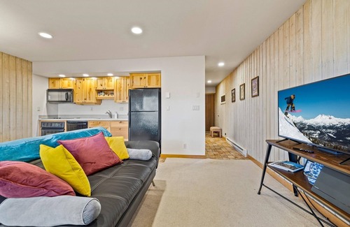 Beautiful and quiet pet-free Mt Bachelor vacation rental, a 616 sq. ft condo situated in Ski House 3 of Mt. Bachelor Village Resort in Bend, Oregon. This easily accessible, comfortable, and affordable condo rental sleeps 3 with a main queen room with new memory foam 12 in. mattress and an additional daybed for one in the living room.