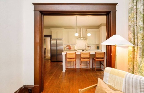 The McCauley House was built in 1920 as a single family home. From what we can tell the McCauley Family owned it for nearly 100 years and at some point in time they did a conversion to a 4-plex apartment building. We bought the building in 2022 and have worked hard to restore every room. in this apartment you will find 2 original fireplaces, 11' Ceilings and all of the modern amenities that you would expect to include a King Bed, Fully Stocked Kitchen and Tile Shower. The apartment features High Speed Internet with an access point for ethernet and Smart TV's in both the living room and the bedroom.