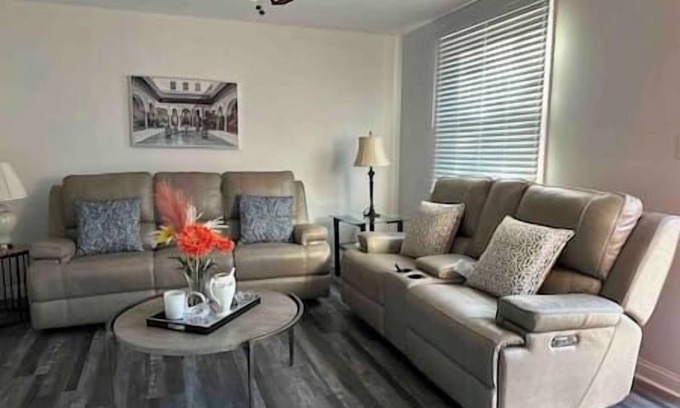 THE LIVING ROOM: The Living room features spacious seating and equipped with oversized recliners, creating the perfect spot to relax and enjoy our huge TV. Whether it's a movie night or catching up on your favorite shows, our living room is designed for your ultimate comfort.