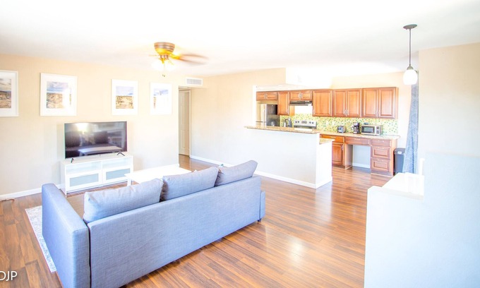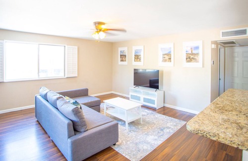 Private 2nd floor condo in beautiful Fountain Hills. 2bedroom/1bath open layout with full kitchen (1100 sqft). At just 5 miles from McDowell Mountain park, the Adventure Condo is a great getaway for biking, hiking and sunshine. Unit includes a dedicated desk and wireless printer for remote work, traveling athletes, and visitors. Washing machine inside the condo with additional community washer and dryer just below the unit.