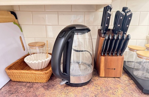 This beautiful air conditioned home features 4 bedrooms all with queen beds, including a bunk room with two queen beds perfect for kids. A private office, complete with bluetooth printer and free high speed internet, and a full bathroom finishes off the second floor. The main floor includes a large living room, a well-appointed kitchen, two dining areas, a well appointed laundry room, entrance, half bath, pantry and two sunrooms. The basement provides additional space with a newly renovated large lounge area complete with a wet bar, a shelf full of board games and full bathroom. There are 2.5 bathrooms, two with tub / shower combos.