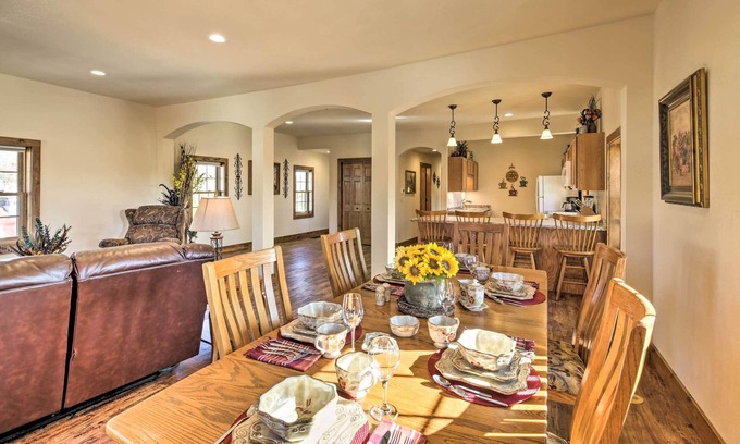 INDOOR LIVING: Open floor plan, dining table, ample seating