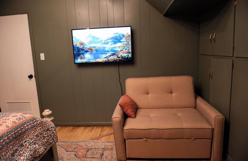 - BEDROOM 2: Pine Room: 1 queen (sleeps 2), 1 twin sleeper sofa. Work desk.