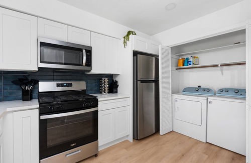 You’ll be just five minutes from the many great restaurants and bars in South Lamar, but when you’re craving a home-cooked meal, the full kitchens provide all the basic necessities for everything from basic snacks to gourmet meals. Enjoy stainless steel appliances, cozy dining areas, and a fully stocked coffee and tea bar.