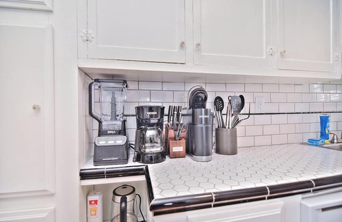 The fully stocked and well equipped kitchen has all of the amenities you need to cook and serve a full meal. There are plenty of dishes, silverware, wine glasses, chopsticks, and steak knives, plus kid-friendly dishes and silverware, in addition to necessities for baking, cooking, and serving meals.