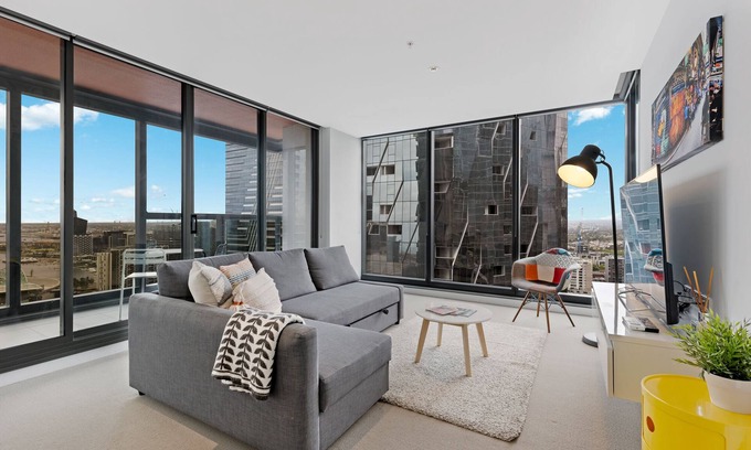 This modern and contemporary apartment is set in the best location to enjoy all Melbourne has to offer. Uninterrupted stunning views to north and west of CBD, Docklands and Southern Cross Station. The apartment is filled with abundance of natural light. Enjoy the convenient Melbourne CBD living style with shops and cafes across the road. There is even a Coles Supermarket and a Asian Grocery shop just across the road. Tramlines are at your doorstep. The free city circle tram is just a 4 minutes walk from the apartment. A short stroll will bring you to the Docklands, Crown Casino and Entertainment Centre and South Wharf DFO.