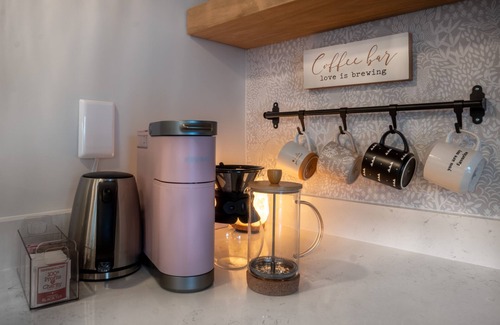 ✔ Coffee bar with pour over, Keurig, and French press to start your morning off right