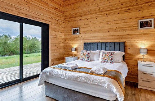 A gorgeous wooden retreat surrounded by peaceful rural views, this two-bedroom Finnish lodge offers eco-friendly accommodation for families or small groups of friends. It’s located in the quaint village of Hintlesham, deep within the Suffolk countryside, creating a serene backdrop for your escape. Whether you’re sipping local ale in a pretty pub or tucking into a meal on Ipswich’s pretty waterfront (5 miles), you’ll find plenty to do nearby. This sustainable four-person dwelling is made from attractive wooden panelling inside and out. Its spacious open-plan living area is the main hub, with comfy sofas, a modern kitchen, a breakfast bar and a dining table located next to huge sliding doors. Enjoy meadow views as you eat together, or if it’s mild enough, head outside onto the wraparound veranda to dine in the fresh air. Deckchairs are on hand for those lazy afternoons with a book and a cuppa. If it’s a cooler time of the year, you’ll appreciate the wood burner to create a cosy ambience inside. The two bedrooms each have their own bathrooms to ensure your privacy and comfort. Hintlesham is known for its elegance and country charm, as well as the 16th-century Hintlesham Hall (1 mile) where you may like to treat yourself to an indulgent spa day. There’s also a lovely pub in the village (0.5 miles) for enjoying a quiet drink. Outdoor aficionados will love the numerous walking and cycling trails meandering through the idyllic landscapes nearby, with Dedham Vale Area of Outstanding Natural Beauty just 11 miles away. Feel like a round of golf? Hintlesham Golf Club (1 mile) offers a pristine course set in gorgeous surroundings. If you’re after something the children will love, a family-friendly adventure awaits at Jimmy’s Farm and Wildlife Park (6 miles).