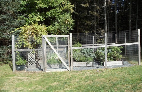 Outside: Adirondack chairs, hammock, badminton, flower & vegetable gardens, charcoal grill, fire pit.