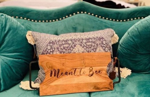 Meant to Bee is our dreamy hive designed with couples in mind. It offers a king memory foam green tea infused mattress with hotel style bedding and a charming emerald-green loveseat. This hive is complete with AC/heat, refrigerator, coffee maker, and his and her robes. There is outdoor seating exclusive to this hive for guest to sit and enjoy the serenity of the lake as well as a firepit and grill for convenience. This hive is perfect for couples looking for a romantic getaway to the great outdoors.