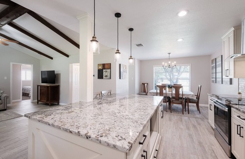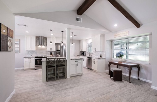 Beautiful three bedroom (two Queen beds and one King) two bath home with open floor plan and dining room. Nice fenced in back yard.