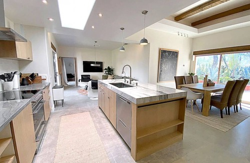 When searching for the ideal wedding accommodation, look no further than this Mediterranean-modern estate in Palm Desert. Not only does it provide breathtaking views, but it also offers ample space and amenities to create unforgettable memories on your special day.