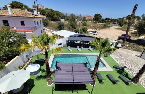 Mediterranean Moon House is a recently renovated villa in Alicante where guests can make the most of the garden and bar. This property offers a private pool, free Wifi, and free private parking. The villa has a children's playground and a hot tub. Featuring a balcony and mountain views, the spacious villa includes 4 bedrooms, 2 living rooms, flat-screen TV, an equipped kitchen, and 5 bathrooms with a hot tub and a bath. A private entrance leads guests into the villa, where they can enjoy some wine or champagne. There's also a seating area and a fireplace. Albufereta Beach is a 19-minute walk from the villa, while Alicante Golf Club is 2.7 miles from the property. Alicante–Elche Miguel Hernández Airport is 14 miles away.