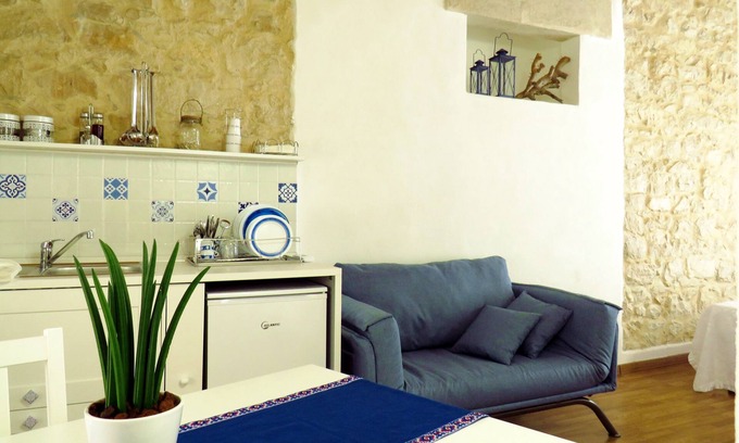 The house has just been renovated and has two walls with exposed stone, typical of the ancient buildings of Ragusa, and characteristic niches.