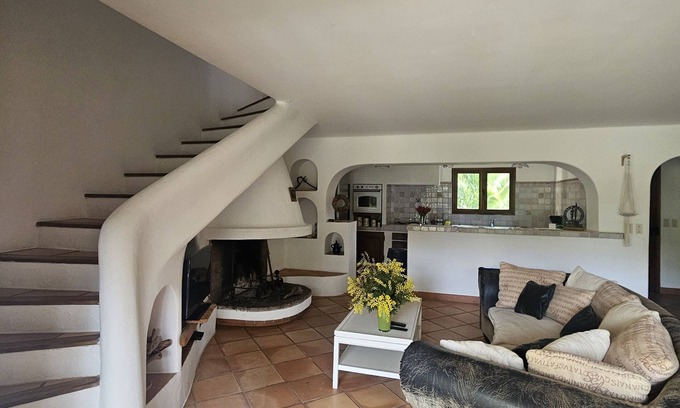 Villa on family property in the countryside under pine centenary parasols, amidst arbutus, myrtle and mastic which to rest. Ideally located between the beaches of Pinarello, Villata, Capicciola and Saint Cyprien has all less than 5 minutes. The villa has 3 bedrooms, 2 bathrooms, living area with kitchen open to living room with fireplace .....