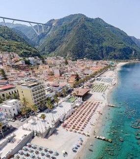 Beachfront Location: Mediterranean Sunset Veranda Bagnara in Bagnara Calabra offers direct beachfront access with stunning sea views. Guests can relax on the sun terrace or take a dip in the rooftop pool. Spa Facilities: The apartment features spa facilities, including a hot tub and sauna. Free WiFi is available throughout the property, ensuring connectivity for all visitors. Comfortable Accommodations: Recently renovated, the spacious apartment consists of one bedroom, one bathroom, and a living room. Amenities include air-conditioning, a kitchenette, and a balcony. Nearby Attractions: Bagnara Calabra Beach is 656 feet away. The Reggio di Calabria Tito Minniti Airport is 22 mi from the property.