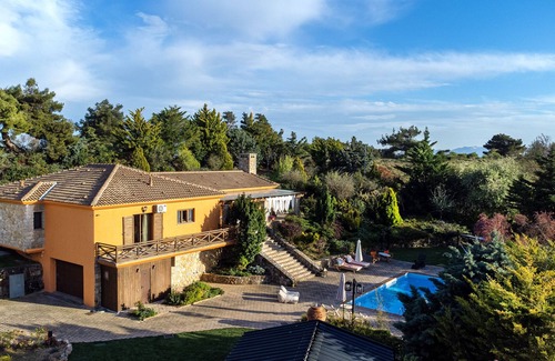 A mediterranean style villa with private pool, located on a secluded hilltop with a superb view of Evoia bay. Located in just 40klm from Athens center. Ideal for relaxing holidays with family or friends!