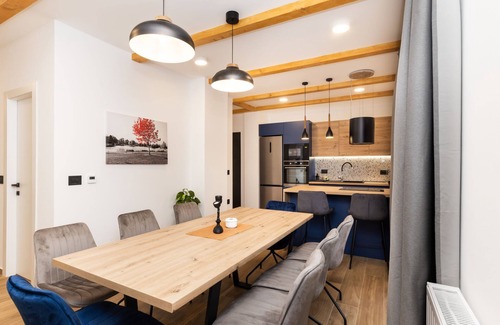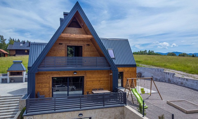 Kupjak 10 km from Delnice: Beautiful single-family house "Medvjed", 2 storeys, built in 2024. 6 km from the centre of Skrad, 57 km from the centre of Crikvenica, 58 km from the centre of Rijeka, in an elevated position, 50 km from the sea, 50 km from the beach. For shared use: barbecue. Private: property 550 m2. In the house: internet access, sauna, hot tub (all included), relaxation room, table tennis, playroom, table football, central heating system, air conditioning, washing machine, tumble dryer. Parking (for 2 cars) at the house on the premises. Shop 6 km, supermarket 10 km, restaurant 7 km, bus stop 6.7 km. Walking paths from the house 100 m, sled run 300 m. Nearby attractions: adrenalin park Kupjak 1 km, Zeleni vir nature park 7 km, Muževa hiža cave 7 km, Risnjak national park 22 km. Well-known lakes can easily be reached: Lokvarsko jezero 18 km. Please note: car recommended. Groups of teenagers on request only. Additional accommodations can be booked. Property ref. HR2950.102.1 is situated on the same property.
