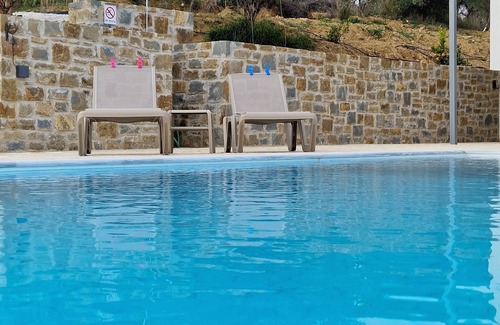 Meerblick und Bergblick, alleinstehendes Haus mit Pool, Barrierefrei im EG is located in Foinikounta. Meerblick und Bergblick, alleinstehendes Haus mit Pool, Barrierefrei im EG provides accommodation, featuring Pool, Private Pool, Fireplace/Heating, among other amenities. This Villa features Pool, Private Pool, Fireplace/Heating, to make your stay a comfortable one.