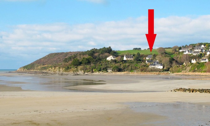 Modern, beautiful, very comfortable single-family house "Meeresblick". In the district of Petit Port 800 m from the centre of Saint Michel-en-Grève, on the outskirts, 8 km from the centre of Plestin-les-Grèves, 11 km from the centre of Lannion, in a quiet, sunny position on a slope, in the residential district, 150 m from the sea, in a cul-de-sac, south facing position. Private: beautiful, well-kept garden 1'000 m2 (not fenced) with lawn and wildlife garden, courtyard. Children's playground (swing), parking (for 3 cars) on the premises. Shop 700 m, supermarket 7 km, bicycle rental 1 km, bus stop 6 km, sandy beach 800 m. Sailing school 5 km, tennis 1 km. The owner does not accept any groups.