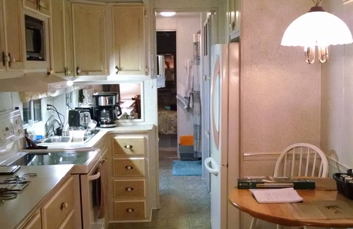 This upgraded unit is located in Outdoor Resorts of America (ORA) - Melbourne Beach's PREMIER mobile home park boasting of well-maintained units and pristine public facilities and spaces. This secure gated community of 550 upscale units spans from the Indian River to the Atlantic Ocean featuring a pool and community house overlooking the Indian River with fishing and observation pier with nightly "sunset viewing" parties and gatherings, Private boat launch and convenient kayak loading area. PLEASE DO NOT BOOK UNTIL YOU CONFIRM AVAILABILITY BY CORRESPONDING WITH ME THROUGH VRBO.