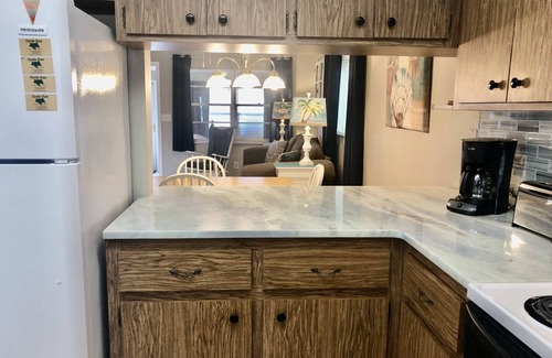 The kitchen contains a full size stove and refrigerator, a microwave, toaster and coffee maker plus all dishes, silverware, cooking utensils and cookware. Bed linens, towels and washcloths are also provided.