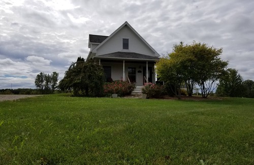The property is one of the more alluring accommodations in Michigan Wine Country. The house was built in 2005 by an Australian who patterned it after his country's traditional Victorian Farmhouse. It features wide-plank wood floors, large windows, and interesting details throughout. From the house, you will see vineyards, hayfields, distant rolling hills, and a picturesque pond and wetland west of the property.