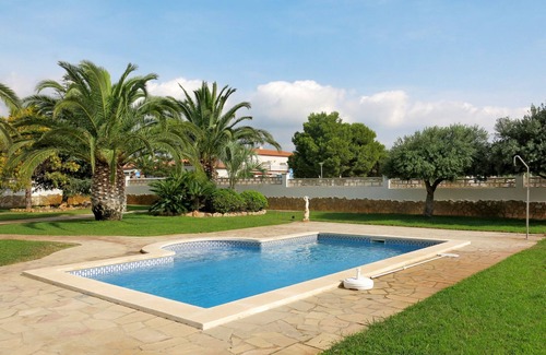 Single-family house "Memphis". 1 km from the centre of Miami Playa, 12 km from the centre of Cambrils, in the residential district, 1.2 km from the sea. Private: property 1'200 m2 with lawn and wildlife garden, swimming pool (8 x 4 m, seasonal availability: 01.Jan. - 31.Dec.). WC in the pool area, outdoor shower, table tennis. Stepped path (3 steps) to the house. Parking on the premises, single garage. Shop 300 m, supermarket 1 km, bus stop 2.3 km, railway station "Hospitalet de l'Infant" 3.5 km, sandy beach 1.2 km. Golf course (18 hole) 3 km. The owner does not accept any youth groups.