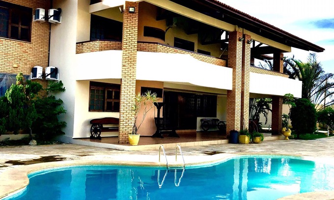 The house is well ventilated and has 10 rooms, 8 suites with box beds, all rooms with Split air conditioning, living room, electric showers in all bathrooms, full kitchen, balcony on the ground floor and first floor, pool and a comfortable deck with bathroom, a shower near the pool. All this just 3 blocks from the sea and white sands of Porto das Dunas and the famous Beach Park complex - Aqua Park, close to restaurants.