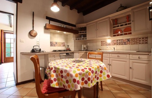 COUNTRY GITE 4/6 people, carefully renovated by the owners who chose to keep the beams and old furniture to maintain a traditional spirit. The cottage is spacious and fitted out in a beautiful house of character, former coaching inn, adjoining the owners' house, between the sea and the mountains. Ground floor: equipped kitchen area, dining area, relaxation area (fireplace/insert), storage room, bathroom. Wc. Upstairs: 3 bedrooms (3 double beds. 1 single bed) including one opening onto a covered terrace with mountain views, wc. Central heating with gas and wood at an additional cost. No rental of sheets. Cleaning package possible. Enclosed garden, swing. Garden furniture, barbecue, parking in front of the cottage for 2 vehicles, enclosed shaded courtyard. View of the mountains and the green landscape. Quiet site with trees and flowers. Walks, hikes, fishing. Leisure center nearby.