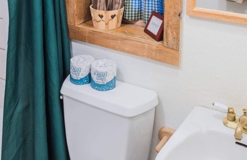 The hosts will provide filters for the coffeemaker, paper towels, and dishwasher detergent as well as all the required bedding and towels to ensure a cozy stay. Other amenities include a propane heat stove, a dining table, a gas range, a microwave, and a fridge. Outside, there is a private deck/porch and a propane barbecue.