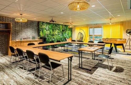 Mercure Lyon Est Chaponnay is ideally located in the South East of Lyon, just off the A46 motorway. Eurexpo Convention Center is 5.6 mi away and Lyon Saint-Exupéry Airport, Vénissieux Train Station, Oullins Train Station and Stade des Lumières (Parc Olympique Lyonnais) are all within a 20-minute drive away. All rooms are air-conditioned and nonsmoking. They feature HD TV, free WiFi access and a safety deposit box. The private bathroom includes a shower and a hairdryer. Decorated in a contemporary style, the on-site restaurant offers seasonal cuisine, prepared using fresh produce. Guests can also enjoy a drink from the lounge bar, which includes a billiards table or make use of the two terraces. Buffet breakfast is available in the restaurant and can be enjoyed in the comfort of your own guest room upon request. A cheaper, express breakfast is also available at the bar until midday. Additional features include private meeting rooms available for hire and a 24-hour reception. Free private parking is possible on site.