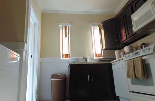 THIS BUNGALOW IS ONE UNIT OF THE HOUSE. IT IS SEPARATED FROM THE OTHER UNIT BY A LOCKED DOOR. 1 BEDROOM WITH 1 KING SIZE BED. There is a Twin bed and a SLEEP SOFA in the living area. LUXURY ROBES FOR LOUNGING. CENTRAL AIR CONDITIONING, SMART TV. YOU HAVE THE WHOLE UNIT TO YOURSELF. NO SHARED SPACE. FULLY EQUIPPED KITCHEN, MICROWAVE AND FRIDGE. PARKING AVAILABLE ON PROPERTY.
