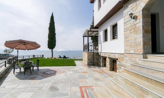 Mermaid Beachfront Villa consists of 2 very elegant and traditional residences in order to offer you the privacy and moments of relaxation you need. It has an almost private beach directly in front of it, exclusively for the surrounding residents as there is no access from the main road. The 2 residences can accommodate families and groups of friends up to 12 people. Specifically: - 1st residece it's a 2-storey house: 135 sq.m total. It offers a large living room with dining room, fully equipped kitchen, 3 bedrooms, 1 bathroom, 1 wc, terraces and outdoor area with furniture and unobstructed sea view. You can accommodate 4 to 6 people. - 2nd residence it's a remi-basement residence 75 sq.m total. It offers a comfortable living room, a fully equipped kitchen with a dining area, 1 bedroom, 1 large corner sofa bed in the living room, 1 sofa bed in the dining room, 1 bathroom and a furnished outdoor area. It can accommodate 4 to 6 people.
