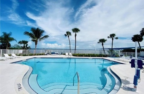 Your home away from home in Jensen Beach with this brand new two bedroom quaint cottage, it features, 1 king bed and 2 twin beds, perfect for a small group of guests. With a cozy living room and a sofa bed for extra sleeping space, this property offers an enjoyable retreat. Take advantage of the washing machine, fitness room, and WiFi during your stay. Relax by the beautiful heated pool on the inter-coastal, within minutes from pristine beaches .