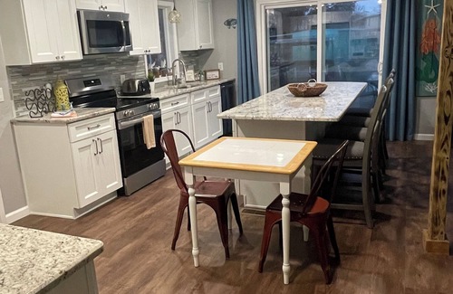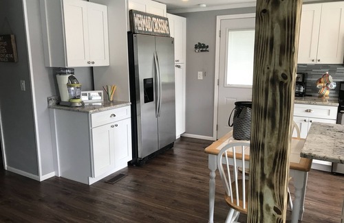 This listing is a newly remolded modular home with 3 bedrooms and 1 bath. It has a large kitchen with stainless steel appliances and granite counter tops. Plenty of space to gather around the island. Smart TV in main living room with Netflix. 2 sets of sliding glass doors open up to a large deck with seating and a gas grill. All bedrooms have a queen size bed. 6 kayaks are on the property along with a fire pit. Bring your boat we have a dock.