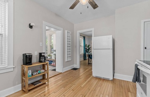This spacious and beautifully renovated character home is only a 30 min drive to Oshkosh & Road America! Upon entry you are welcomed by arched doorways and restored original hardwood floors. Original glass knobs, built-ins and French doors! New memory foam mattresses and 43” Roku TVs in all bedrooms. 65` Roku TV in living area. Kitchen is fully stocked to prepare meals. Enjoy your morning beverage from the coffee and tea bar while relaxing in the sunroom. We are pet friendly!