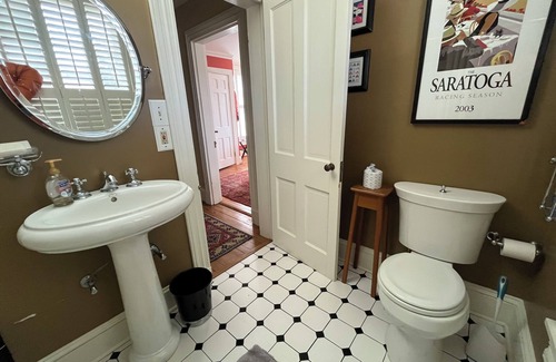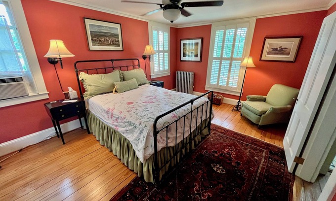 Relax in an elegantly renovated 1800's historic house in the center of a thoroughbred horse farm. Spacious comfortable queen and full bedrooms with baths - sleeps 6 .Convenient location to Baltimore 695 and I-95 corridor. An ideal location for quiet enjoyment of the farms activities. While designated "not suitable for children" some exceptions are allowed. Traveling with pets ? Ask about our other lodging options adjacent to the farm.
