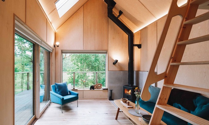 The spacious accommodation is finished to an exceptionally high standard, and was built on a fabric-first approach ensuring that it has a low environmental impact. Nothing has been spared with a Morø Wood Burning stove, underfloor heating and fully fitted kitchen. The living area features sliding doors leading to a south facing deck from which you can relax and enjoy the surrounding tranquil woodland setting. An ideal spot to unplug from the pressures of of ‘the usual wheel of day-to-day life.’