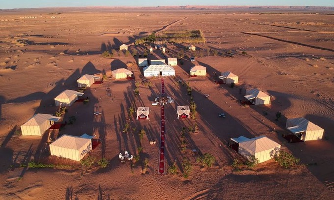 Best-rates for the Merzouga Desert Luxury Camp starts from $117 per night with includes Bedding/Linens, Kitchen, Balcony/Terrace, Accessibility, Security/Safety, Wellness Facilities, Fireplace/Heating, Barbecue/Outdoor Cooking, Child Friendly, Internet, Parking, Pet Friendly with all other amenities. Perfect for Weddings is committed to ensuring every guest experiences a comfortable and extraordinary stay, whether planning a romantic getaway, a honeymoon, a pet-friendly stay, or celebrating with the entire wedding party.