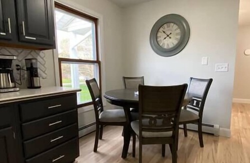 Comprised of a Ranch and small House, the Mexico Point Estate is a perfect getaway just 1 minute from the Mexico Point State Park, Boat Launch and beach. Directly across from Lake Ontario fishing charters dock and just a 5 minute drive from multiple state parks with kayaking, fishing, ATV trails hiking and more. Just a short drive from the world famous Salmon River for the Fall Salmon run and with many options for snowmobile trails in winter. Enjoy the outdoors and come home to luxury! The house was beautifully renovated in 2021 and with a massive driveway there is even space for those with trailers. It's comprised of 2 separate buildings, the 'Ranch' and the 'Farmhouse'. The Ranch: Entering from the front door you're just across from the huge Master suite has a King bed with full en suite bathroom and a pullout loveseat if you need an extra bed or some reading space. The second bedroom, which is also huge has a queen, full en suite bathroom, and little reading bench by the window. Both bedrooms have plenty of closet space. The third bedroom is at the other side of the house, with its own entrance and provides a Queen bed, with a nearby 1/2 bathroom and closet. To the right of the entrance, you'll enter a fully renovated Kitchen with a dining space. The gigantic ranch living room offers load of natural light, with comfortable couches, floor to ceiling glass and skylights. Beautiful to be in any time of day or night. It’s also equipped with a smart TV (Netflix, Hulu, Prime and more). The living room also has a sliding glass door out into the Garden and grill area. There is a deck with furniture available to use outside that’s ideal to relax and enjoy the space. To the other side of the living room is the mudroom, which is where we ask you to enter the house when you've been out enjoying the outdoors for the day. We provide hanging rails for dirty coats and waders and a shoe rack for your shoes and boots. The Farmhouse: Entering the Farmhouse through the front door, you walk step into a beautiful living room. Directly in front of you is the downstairs full bathroom and to your right is a cute dining area and modern kitchen with everything you need if you decide to stay at home and cook. At the back of the kitchen is the Laundry area and back door, which we ask you to use when you have been out enjoying the outdoors / fishing etc. There is also a deck for you to sit and enjoy the outdoor space. Moving upstairs, you'll find 3 comfortable bedrooms. 2 with queen beds and 1 with a full. You'll also find an additional bathroom. Careful on the stairs as they are steep! For both houses: - Absolutely no cleats or waders inside please! Hangers are provided in the mudroom / laundry area by the back door. - Absolutely no fish to be skinned and gutted in the property! There are plenty of local stations that will do this for you for a very small fee and dispose of the detritus. - Please store all fish and bait in sealed containers - Furry friends are welcome to stay for an additional fee but must be kept off the furniture. You will have access to the entire home. The only shared areas are the driveway and garage. Garden may be shared with guests from our other unit but is not open to the public. There is a 1 car garage you are welcome to use if it is available and the driveway is big enough for several cars and even trailers. Please park on the left of the driveway. You can reach Joe by phone almost any time for any issues. If you have any special requests, let us now ahead of time and we will do our best to make them happen! Just 1 minute from the Mexico Point State Park Boat Launch and Beach and directly opposite most of the charter trips Marinas - you are minutes away from the sought after Dan's Chicken Shack and other great eating. Just a short drive from the world famous Salmon River, Snowmobile trails, State Parks and trails, you have everything you could want year round and you are only 10 minutes from the Towns of Mexico and Pulaski which have all of your usual amenities. No cleats or waders inside the house, hanging rails are provided in the Ranch mudroom or Farmhouse Laundry area.