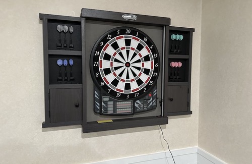 The kitchen features a stovetop pancake griddle and the game room features a full size professional pool table and electronic dart board.