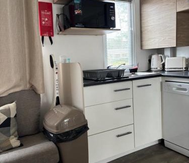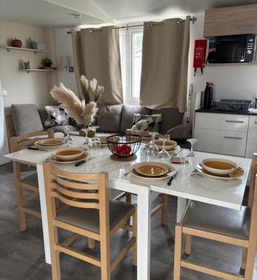 Mh 3 ch - 1 sdb - terrasse couverte - kerlann is located in Pont-Aven, just 27 miles from Parc des Expositions Lorient and 27 miles from Lorient Train Station. 21 miles from Quimper Train Station and 21 miles from Departmental Breton Museum, the property offers a garden and a shared lounge. The indoor pool features a water slide and fence. The campground consists of 3 separate bedrooms, 1 bathroom with a hair dryer, a seating area, and a living room. Guests can enjoy a meal on an outdoor dining area while overlooking the garden views. For added privacy, the accommodation has a private entrance and is protected by full-day security. There is an on-site restaurant and coffee shop. The area is popular for bike tours, and bike rental is available at the campground. A water park and outdoor play equipment are available at Mh 3 ch - 1 sdb - terrasse couverte - kerlann, while guests can also relax on the sun terrace. Football Club Lorient is 27 miles from the accommodation, while Le Palais des Evêques de Quimper is 21 miles away. Lorient South Brittany Airport is 26 miles from the property.