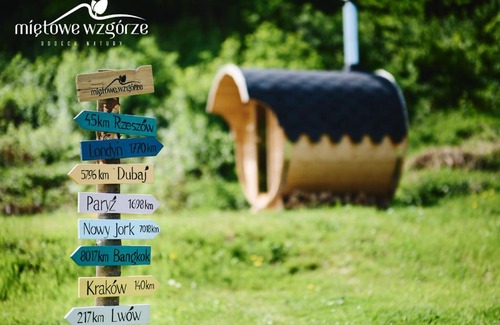 Miętowe Wzgórze - oddech natury provides a sauna and a hot tub, as well as air-conditioned accommodations in Niedźwiada, 27 miles from Nowy Świat Shopping Center. The accommodations feature a hot tub and a spa bath. All units come with a terrace with garden views, a kitchenette with a fridge and a microwave, and a private bathroom with shower. Some units include a seating area and/or a balcony. Guests can also relax in the garden. Underground Tourist Route is 28 miles from the lodge, while BWA Art Gallery is 27 miles away. Rzeszów-Jasionka Airport is 39 miles from the property.