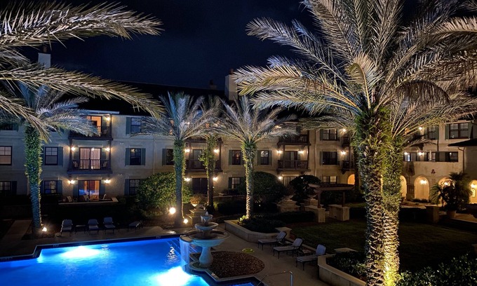 This unit is in the main building and overlooks the palm tree lined pool that is the centerpiece of the property. Enjoy the Florida sunshine from your balcony where you can enjoy the view and listen to the fountain.
