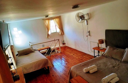 Este departamento, ubicado en Barrio Universitario, al norte de la ciudad de Salta Capital, cuenta con un entorno tranquilo que brinda máxima comodidad durante su estancia. Es muy luminoso, y por las mañanas los cantos de pájaros alegran su despertar. El departamento cuenta en planta alta con una amplia habitación, cama de 2 plazas y un sillón-cama de 1 1/2 plaza con ropa de cama y toallas, ventilador, televisor de pantalla plana, canales de cable y Netflix incluido. Baño completo con ducha eléctrica. Botiquín de primeros auxilios. En planta baja encuentra cocina-comedor, despensa con vajilla y ollas necesarias para la preparación de alimentos. Se brinda además azúcar, yerba mate, café, té, tostadas, para que el inicio de su visita se vea facilitado. Baño completo, con ducha a gas natural. Espacio Gay Friendly. Puede estacionar su auto en la vereda ya que es un barrio tranquilo. En la zona encuentra farmacia, panadería, heladería, variedad de delivery de comidas para todos los gustos, excelente servicio de transporte público así como taxis y remis. Espero que su estancia en "Mi casa, Su casa." sea de su total agrado, y signifique la primera de muchas visitas a nuestra Salta, La Linda.