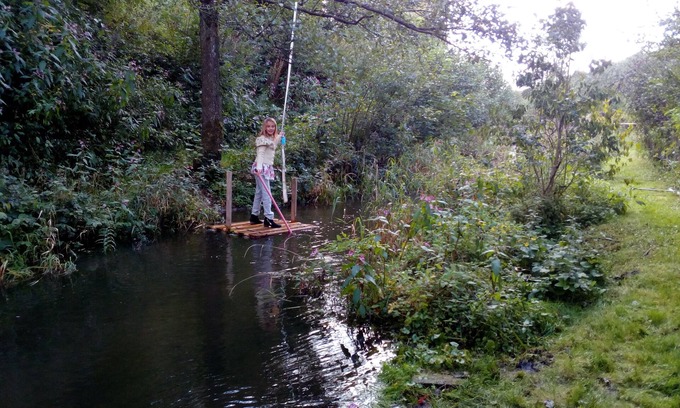 Our apartment is about 77 square meters and 2015 was equipped with a new bathroom, new living room, dining area and many nice details. There is a master bedroom with changing table and if needed a cot available. In the nursery is a new loft bed, as well as some toys for all ages to find. The large kitchen invites you to linger at the large dining table. From the newly furnished living room they look into the 1200 m² garden which is located directly on the stream. In the garden you can have breakfast, bake bread at the campfire or just relax while looking at the surroundings, the forest and the meadows. The house is located in the outskirts. Your children can learn a lot here. They experience a new adventure every day. Whether scavenger hunt in the village, a visit to a turnery in Girkhausen or milk at the farmer ... In our garden, the children are also allowed to camp ...